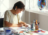Whether creating glass sculpture, functional objects, or architectural installations, her works have consistently won both critical praise and commercial acclaim. Widely published and eagerly collected, her works are in museum collections worldwide. Trained as a painter and sculptor, Hafner first tried her hand at ceramics, both functional and sculptural in 1973. In the ensuing 15 years she created over 12 lines of tableware, both hand crafted and industrially produced, for such firms as Tiffany & Co. in NYC and Rosenthal in Germany. |